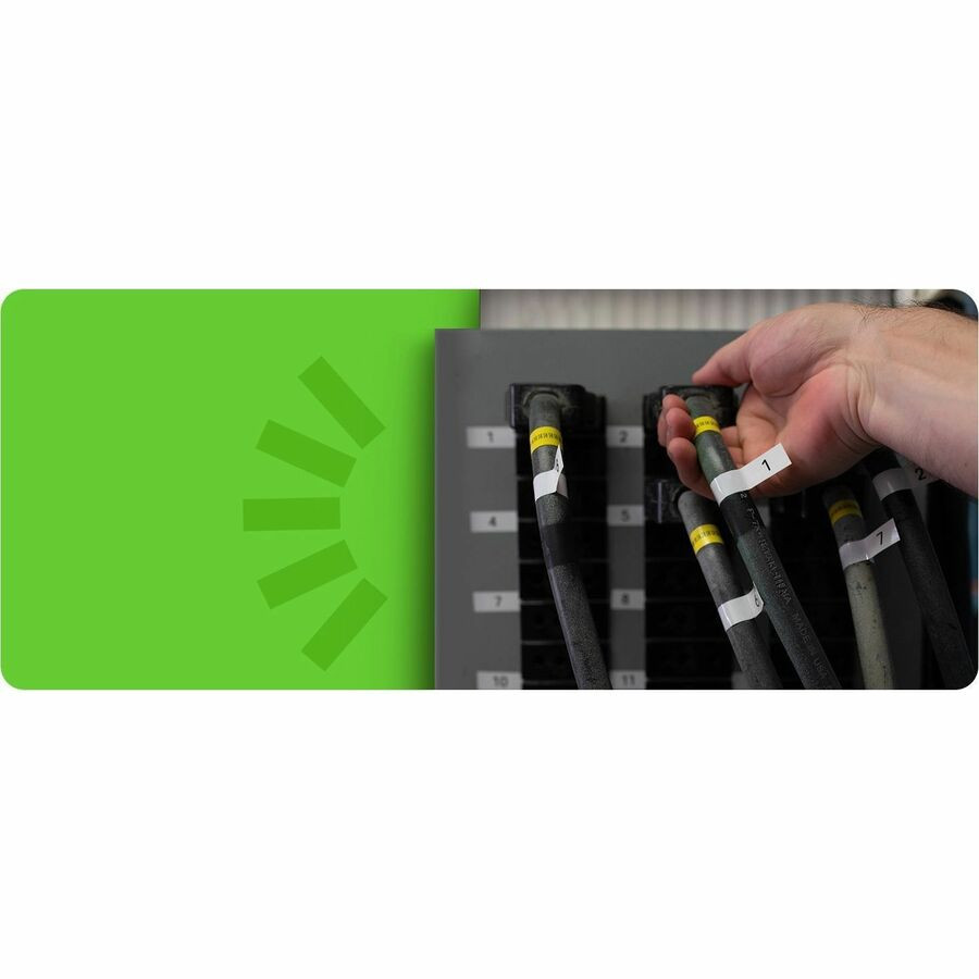 Specifically designed to wrap securely around curved surfaces and withstand extreme conditions, Brother Genuine TZe Flexible ID Laminated Label Tapes help you organize your wires, cables, pipes, bottles, and so much more. TZe Flexible ID Laminated Label Tapes are the perfect choice for IT workers, plumbers, sports teams, schools, and shops. Combining powerful adhesive and Easy Peel split backings, TZe Flexible ID Laminated Label Tapes are easy to apply and can be relied on to remain affixed to smooth, round, and textured surfaces. TZe Flexible ID Laminated Label Tapes are: Chemical Resistant: Tested for resistance to many different chemicals, TZe Flexible ID Laminated Label Tapes can be used in areas and on items that require frequent cleaning with common cleaners like bleach or wipes. Ideal for medical offices, nursing homes, janitorial supply areas, and kitchens. Water Resistant: Able to withstand water and humidity, TZe Flexible ID Laminated Label Tapes can be used in areas and on items with frequent water exposure. Great for plumbers, boating and watersport retailers, and gardening supply centers. Abrasion Resistant: Engineered to perform in harsh environments, TZe Flexible ID Laminated Label Tapes can be used on items that are frequently shared, moved, or accessed in public or home settings. Great for use in retail stores, gyms, locker rooms, and auto shops. Fade Resistant: Tested for fade resistance in a variety of conditions, TZe Flexible ID Laminated Label Tapes can be used in areas and on items that are exposed to sunlight, like landscaping and construction equipment, around pools and decking, outdoor markets, and vehicle lots. UL Certified: TZe Flexible ID Laminated Label Tapes are ideal for use at workplaces to label electrical and network cabling, safeguarding your product and your customers. They're perfect for home use too-use them to arrange cleaning supplies, label reusable jars, organize appliance cords, and label water bottles. A reliable choice for both indoor and outdoor applications, TZe Flexible ID Laminated Label Tapes are strong and durable and can be used confidently in harsh environments and on rough/uneven surfaces. Like all Brother P-touch TZe Tapes, they are designed to work seamlessly with a variety of Brother P-touch Label Makers and are engineered for effortless customization, long-lasting performance, and impressive durability. Images are for illustrative purposes only. Actual output (such as font and margins) may vary. Tape widths listed in inches are approximate. Actual tape widths are listed in millimeters (mm).