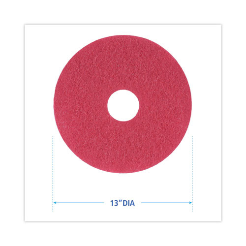 Buffing Floor Pads, 13" Diameter, Red, 5/carton