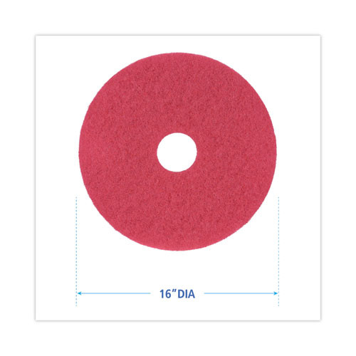 Buffing Floor Pads, 16" Diameter, Red, 5/carton