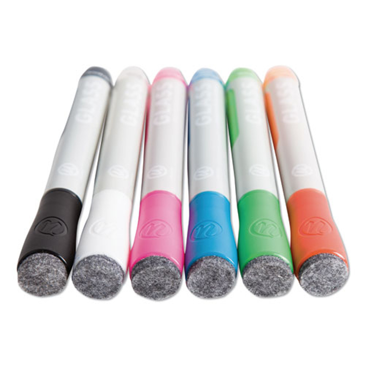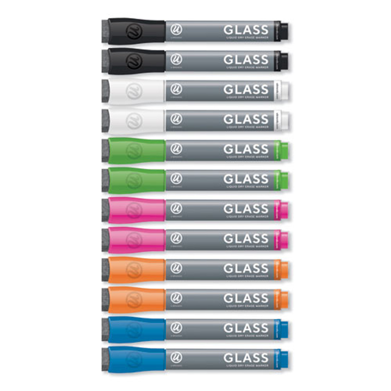 Bullet Tip Low-odor Liquid Glass Markers With Erasers, Broad Bullet Tip, Assorted Colors, 12/pack