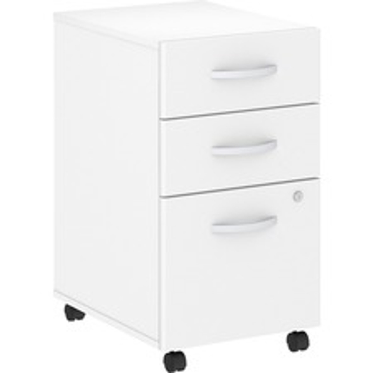 Bush Business Furniture Studio C 3 Drawer Mobile File Cabinet - 27.8" Height x 15.7" Width x 20.2" Depth - 3 x File, Box Drawer(s) - Finish: White, Thermofused Laminate (TFL) - 1 Each