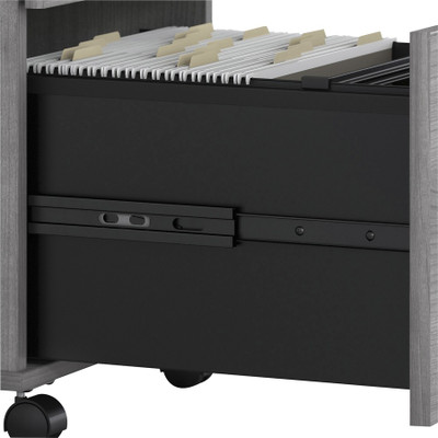 Studio C Collection offers a wide variety of work-space solutions that are built to endure years of use in a busy professional office. Contemporary style offers proven quality and a fresh finish. Studio C is perfect for a private, home or executive office with options for expansion into multi-person work areas. Thermally fused, Modern Hickory laminate surfaces are scratch-resistant and stain-resistant. Clean lines and extended modesty panels provide a professional feel. Brushed nickel hardware complements the contemporary finish. Desktops include built-in, wire-management grommets to maintain a neat work area.