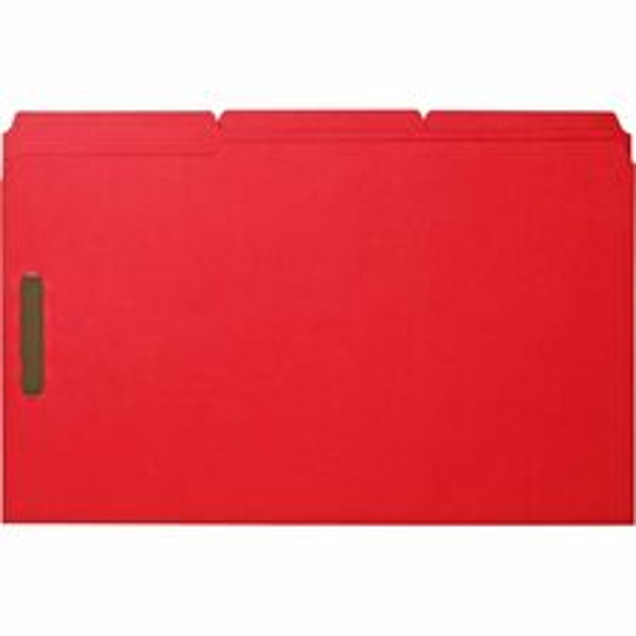 Business Source 1/3 Tab Cut Legal Recycled Fastener Folder - 8 1/2" x 14" - 3/4" Expansion - 2 Fastener(s) - 2" Fastener Capacity - Top Tab Location - Assorted Tab Position - 11 pt. - Red - 10% Recycled - 50 / Box