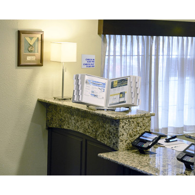 | Marketing Information: | Catalog rack includes index tabs and panels that each hold two letter-size documents for a total, 20-sheet capacity. Stable plastic base allows the panels to rotate 360 degrees. Base has rubber feet to help stabilize the rack from sliding on your wor |