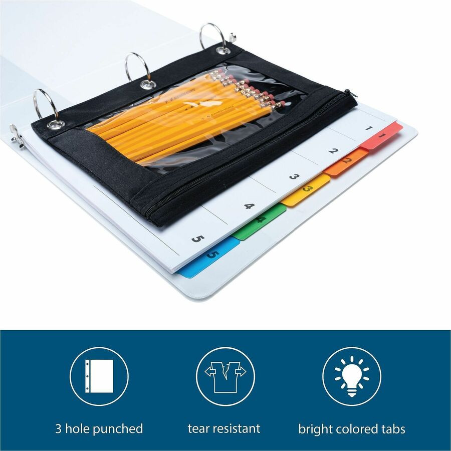 Make organization quick and easy using a black/white Table of Contents page that coordinates with included dividers that have numbered tabs. Key in or type section titles and then print or copy onto the Table of Contents page preprinted with numbers that match the dividers. Edges and brightly colored tabs feature Mylar reinforcement to prevent tearing. Three-hole punched edges allow easy, quick placement into standard-size, three-ring binders. Index dividers are compatible with all laser and inkjet printers and include easy-to-follow instructions.