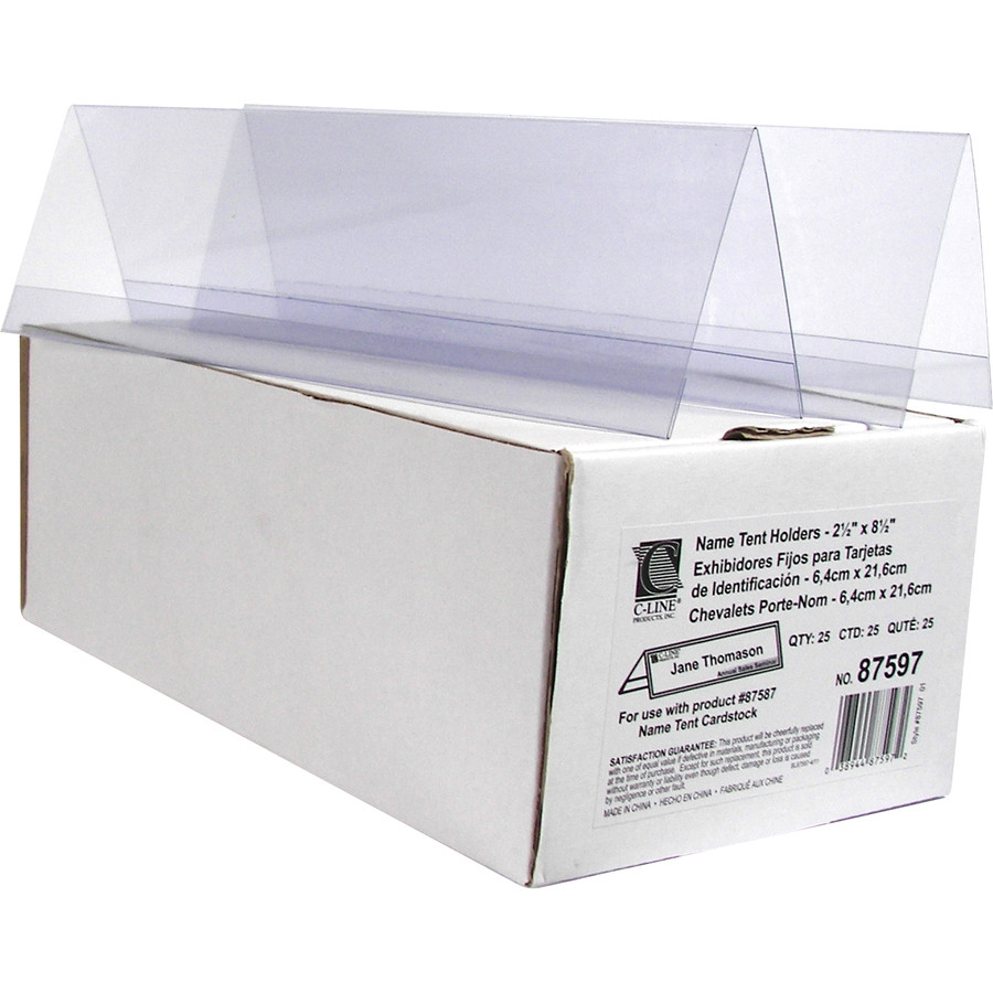 Plastic holder is designed to hold C-Line name tents and signs. Holder sits on desk, table or any flat surface. Ideal for offices, conferences, meetings and more. Simply insert your printed cardstock insert (sold separately) into this reusable, heavyweight, plastic tent holder to display name or sign prominently.