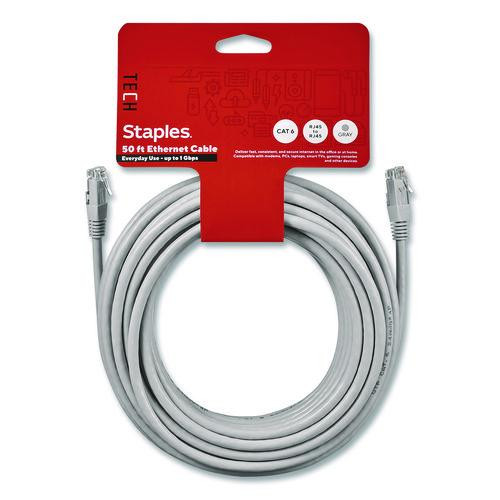 CAT6 Ethernet Cable, 50 ft, Gray
