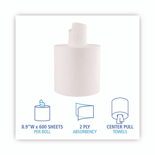 Center-pull Roll Towels, 2-ply, 8.9"w, White, 600/roll, 6/carton