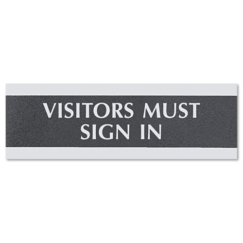 Century Series Office Sign, Visitors Must Sign In, 9 X 3, Black/silver