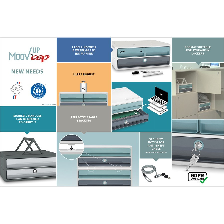 CEP MoovUp Secure Drawer Module - 2 Drawer(s) - 10.81" Height x 14.51" Width x 5.75" Depth - Desktop - Locking Drawer, Handle, Stackable, Key Locked - White - Polystyrene - 1 / Carton