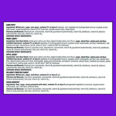 | Flavor: | Apple Jacks®; Cocoa Krispies®; Corn Pops®, Froot Loops®; Frosted Flakes® |