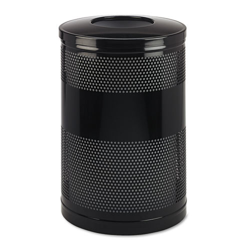 Classics Perforated Open Top Receptacle, Round, Steel, 25 Gal, Black