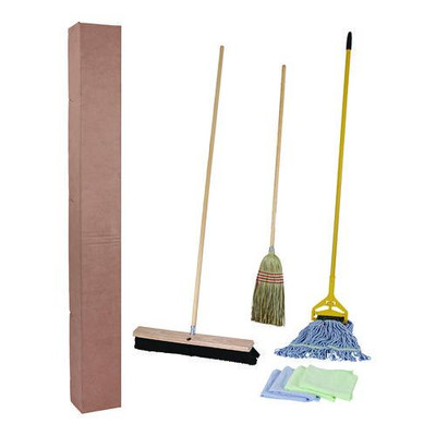 Cleaning Kit, Medium Blue Cotton/rayon/synthetic Head, 60" Natural/yellow Wood/metal Handle