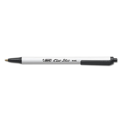 Clic Stic Ballpoint Pen, Retractable, Medium 1 Mm, Black Ink, White Barrel, Dozen