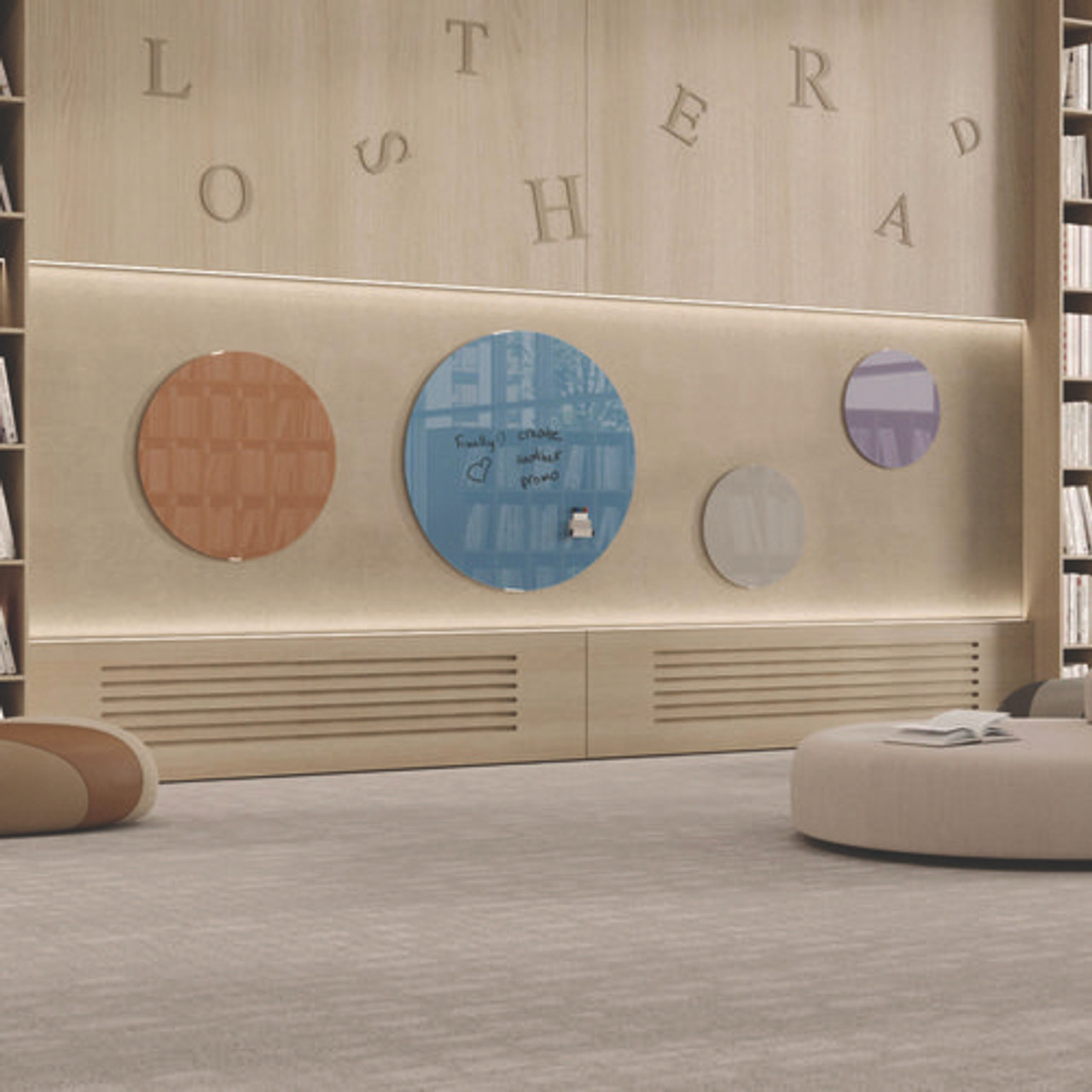 Coda Low Profile Circular Non-magnetic Glassboard, 36 X 36, Denim Surface