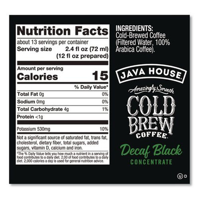 Cold Brew Coffee Concentrate, Decaf Black, 32 oz Bottle