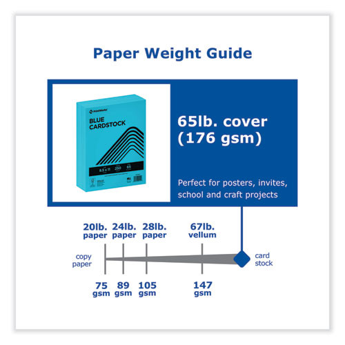 Color Cardstock, 65 Lb Cover Weight, 8.5 X 11, Blue, 250/ream