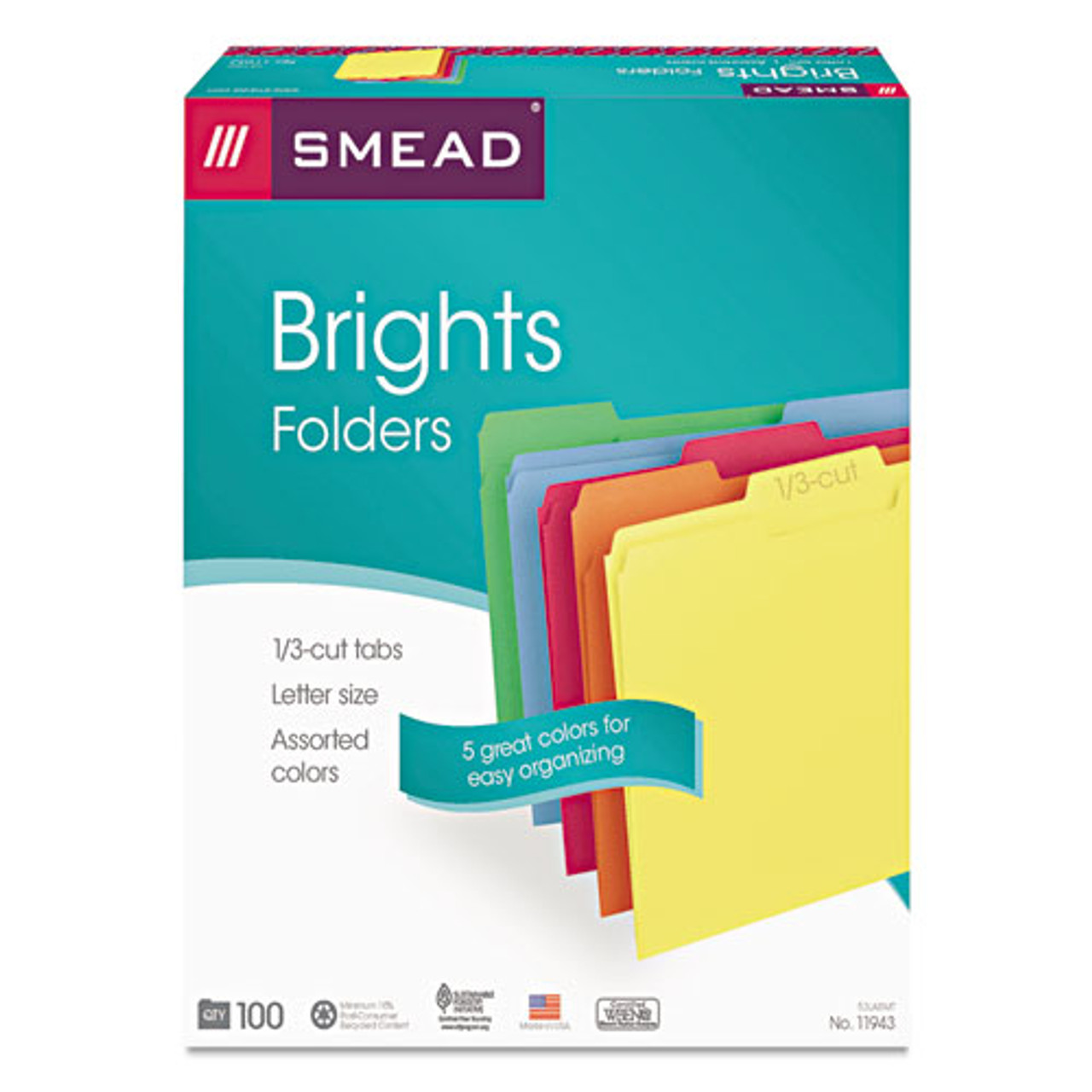 Colored File Folders, 1/3-cut Tabs: Assorted, Letter Size, 0.75" Expansion, Assorted: Blue/green/orange/red/yellow, 100/box