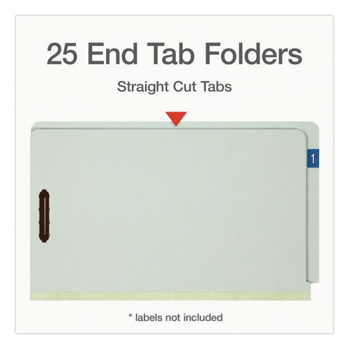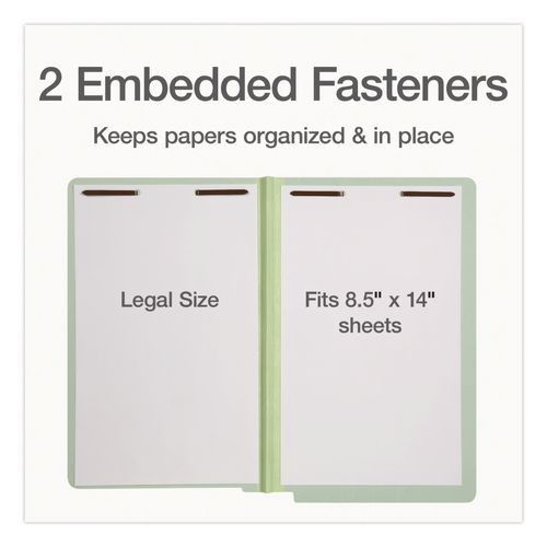 Colored Pressboard End Tab Fastener Folders, Straight Tab, Expands 1", 2 Fasteners, Legal Size, Light Green, 25/Box