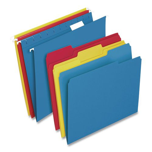Combo Filing Kit, Letter Size, 1/3-cut File Folders, 1/5-cut Hanging File Folders, Assorted, 12 Sets