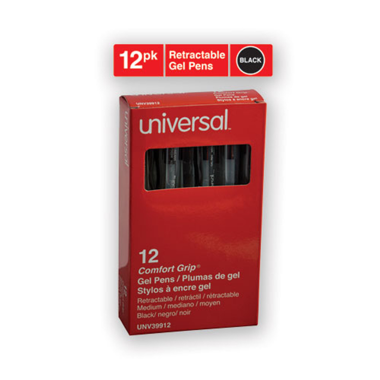 Comfort Grip Gel Pen, Retractable, Medium 0.7 Mm, Black Ink, Smoke Barrel, Dozen