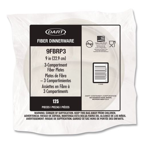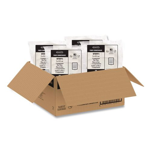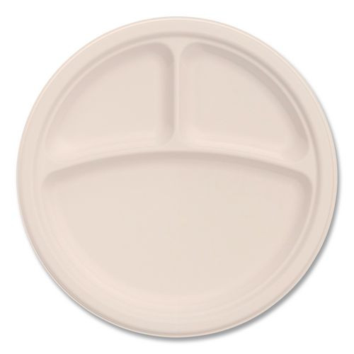 Compostable Molded Fiber Dinnerware, ProPlanet Seal, 3-Compartment Plate, 9" dia, Natural, 500/Carton