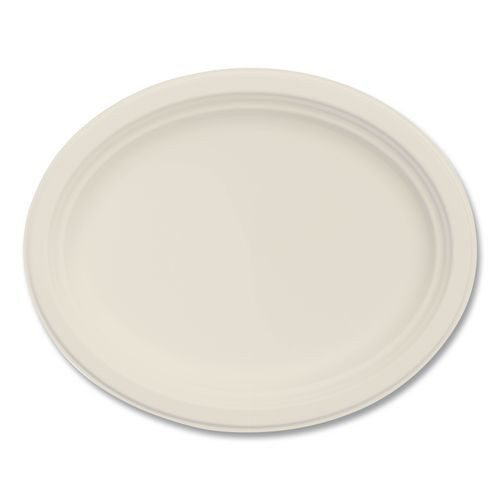 Compostable Molded Fiber Dinnerware, ProPlanet Seal, Platter, 12" Diameter, Natural, 500/Carton