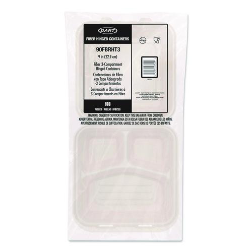 Compostable Molded Fiber Hinged Trays, ProPlanet Seal, 3 Compartments, 9.14 x 9 x 2.98, Natural, 200/Carton