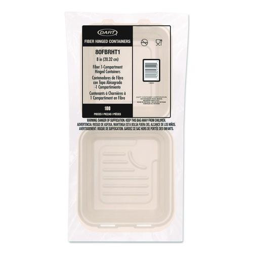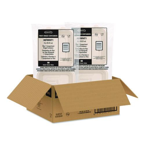 Compostable Molded Fiber Hinged Trays, ProPlanet Seal, 8.65 x 7.94 x 2.98, Natural, 200/Carton
