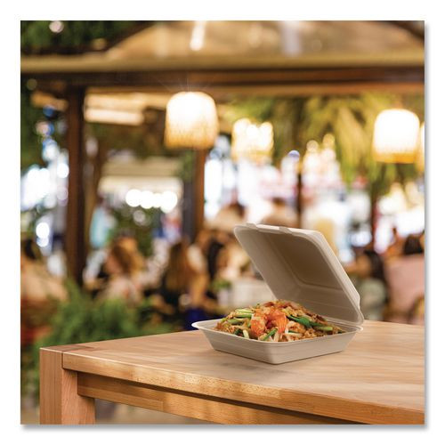 Compostable Molded Fiber Hinged Trays, ProPlanet Seal, 9.14 x 9 x 2.98, Natural, 200/Carton