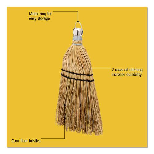 Corn Whisk Broom, Corn Bristles, 12.2" Length, Yellow