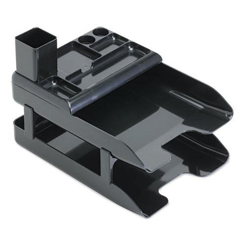 Corporate Desk Tray Set, 2 Sections, Letter To Legal Size Files, 10" X 13.63" X 2.25", Black, Set