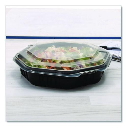 Creative Carryouts OctaView Hinged Lid Containers, 9.13 x 9.55 x 2.38, Black/Clear, Plastic, 100/Carton