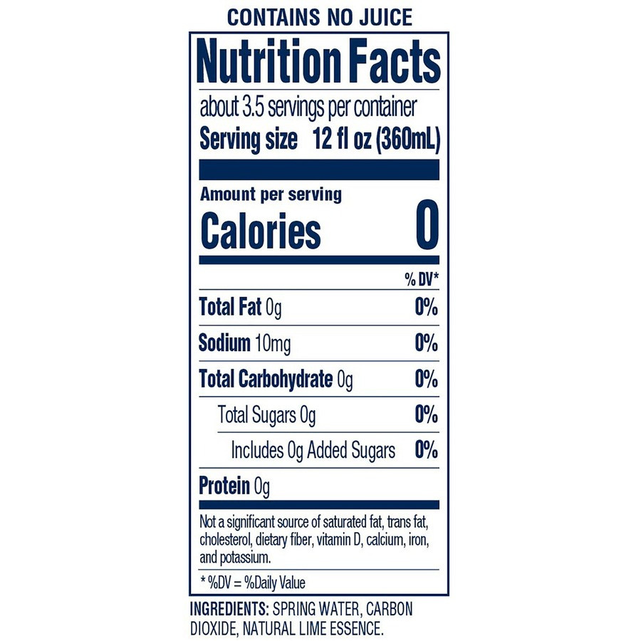 Crystal Geyser Sparkling Spring Water is made with spring water from a protected underground formation that flows to the surface of the earth unaided and may naturally contain minerals. Cold press and steam collection methods are used to capture the essence of fruits into the sparkling water. Lime flavor offers a zesty, citrus blend of key limes from California and Florida. Sparkling water contains no artificial ingredients, additives or preservatives. It is calorie-free, very low in sodium and certified kosher.