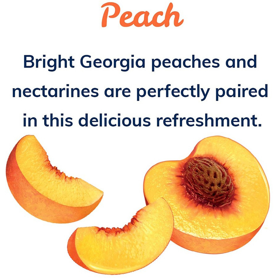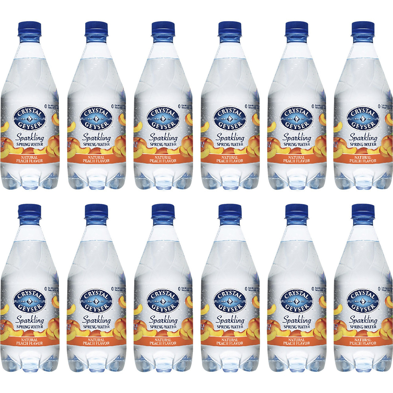 Crystal Geyser Sparkling Spring Water is made with spring water from a protected underground formation that flows to the surface of the earth unaided and may naturally contain minerals. Cold press and steam collection methods are used to capture the essence of fruits into the sparkling water. Peach flavor combines bright Georgia peaches and nectarines in this delicious refreshment. Sparkling water contains no artificial ingredients, additives or preservatives. It is calorie-free, very low in sodium and certified kosher.
