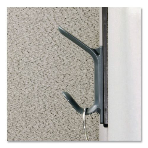 Cubicle Double Coat Hook, Plastic, Gray, Supports 10 lbs