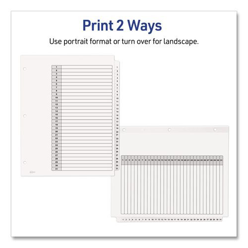 Customizable Table Of Contents Ready Index Black And White Dividers, 31-tab, 1 To 31, 11 X 8.5, White, 6 Sets