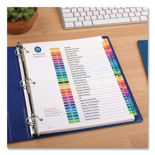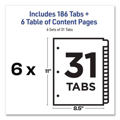 Customizable Table Of Contents Ready Index Multicolor Dividers, 31-tab, 1 To 31, 11 X 8.5, White, 6 Sets
