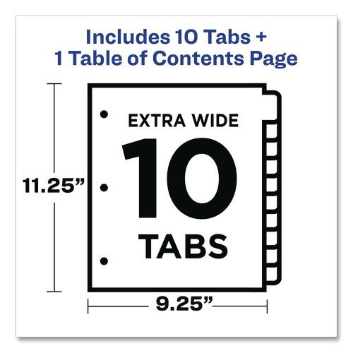 | Special Features: | Extra Wide-Tabs extend beyond sheet protectors. |