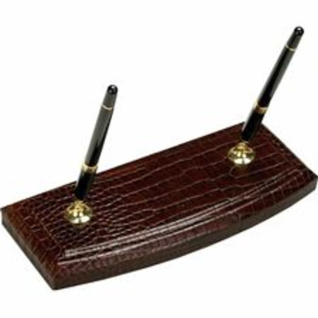 Dacasso Double Pen Stand - Leather - Brown - 1 Each
