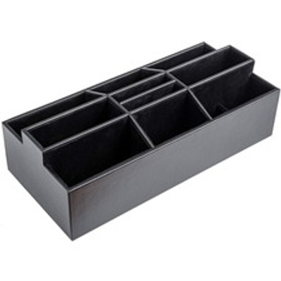 Dacasso Leather Remote Control Organizer - 9 Compartment(s) - Black - Top Grain Leather, Velveteen - 1 Each
