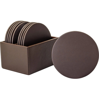 Dacasso Leatherette Round Coaster Set - Round - Chocolate Brown - Leatherette - 1Each
