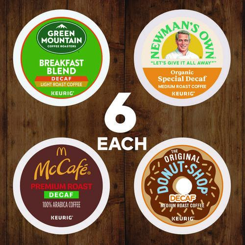 Flavor Assortment: Decaf Breakfast Blend; McCafe Decaf; Newman's Own Organic Special Decaf; The Orginal Donut Shop Decaf