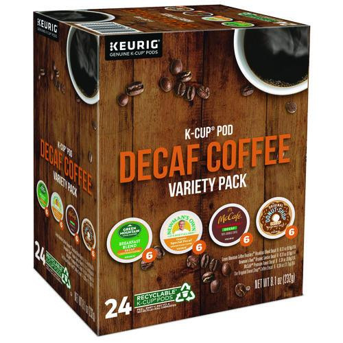 This package boasts an assortment of excellent coffee house's signature varieties. They are also naturally decaffeinated, so if you're the type who prefers breakfast for dinner, indulge without worrying about sleepless night consequences. No matter the season, enjoy the perfectly brewed cup of your preferred perk when you use K-Cups® for the Keurig® system. Beverage Type: Coffee; Flavor: Assorted; Roast Type: Decaf; Product Packaging: K-Cup®.