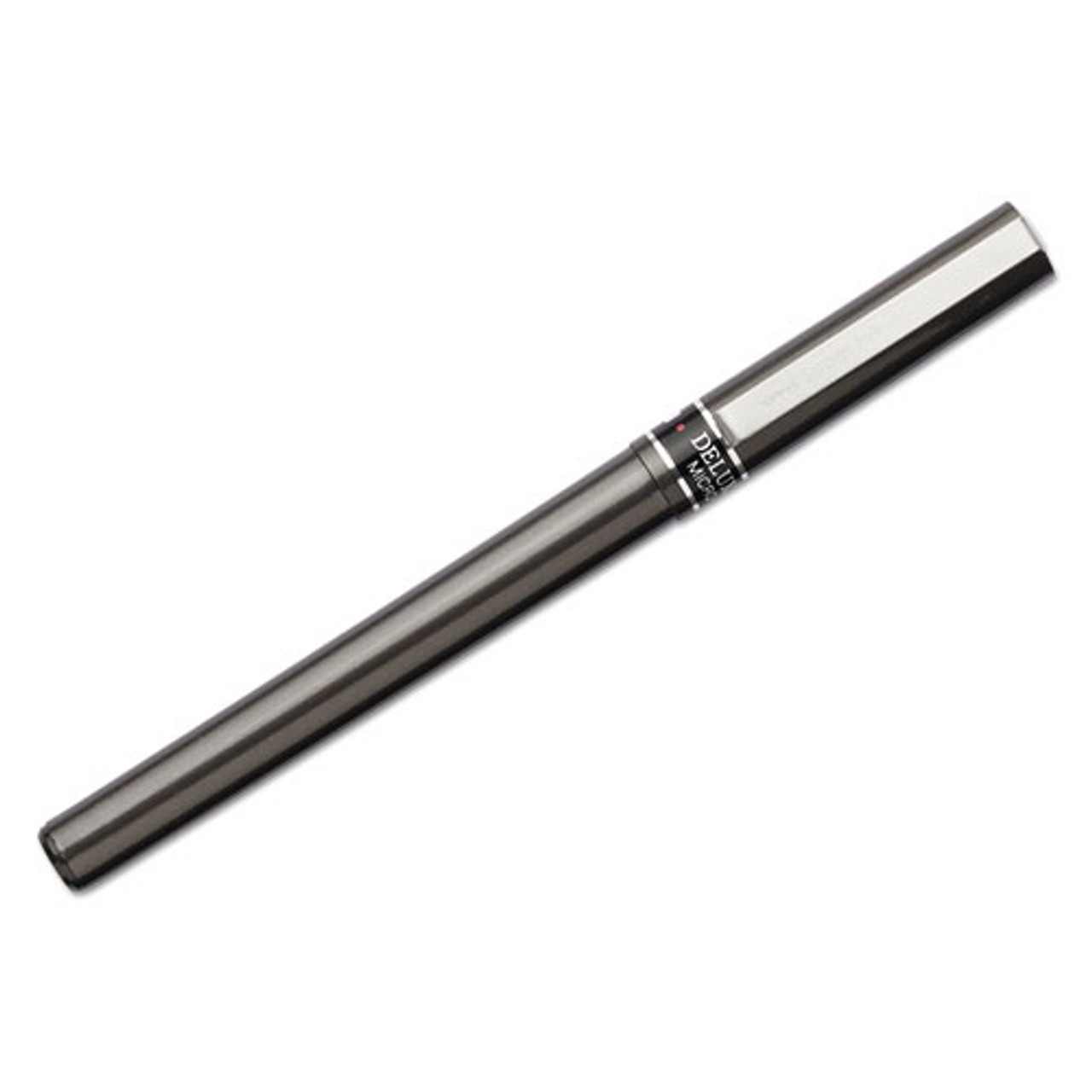 Deluxe Roller Ball Pen, Stick, Micro 0.5 Mm, Blue Ink, Metallic Gray Barrel, Dozen