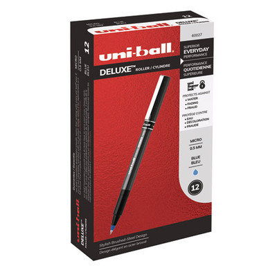 Deluxe Roller Ball Pen, Stick, Micro 0.5 Mm, Blue Ink, Metallic Gray Barrel, Dozen
