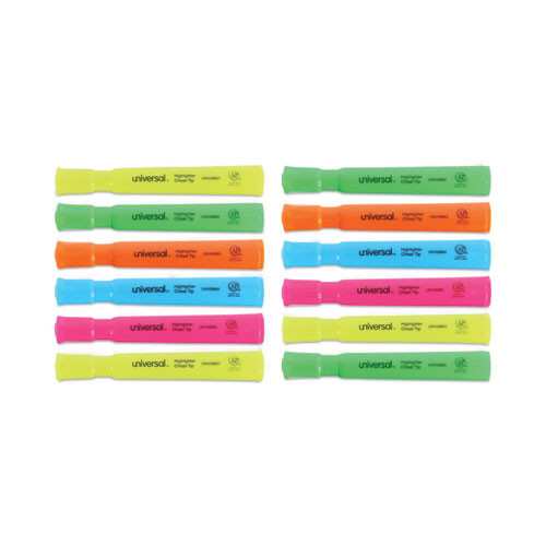 Desk Highlighters, Assorted Ink Colors, Chisel Tip, Assorted Barrel Colors, Dozen
