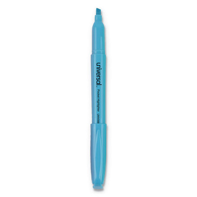 Desk Highlighters, Fluorescent Blue Ink, Chisel Tip, Blue Barrel, Dozen