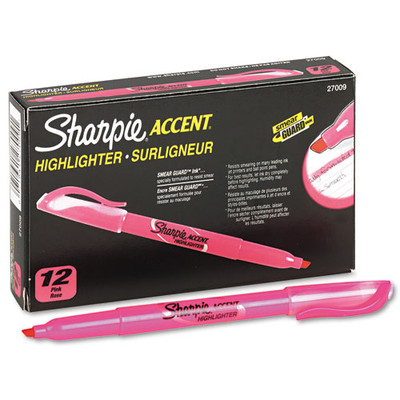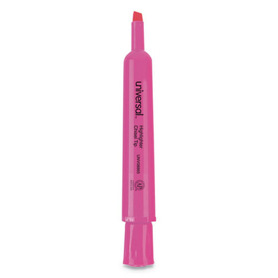 Desk Highlighters, Fluorescent Pink Ink, Chisel Tip, Pink Barrel, Dozen