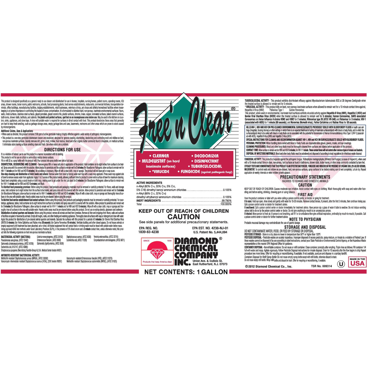 Diamond Free & Clear Disinfectant Cleaner - 128 fl oz (4 quart) - Deodorize - 4 / Carton